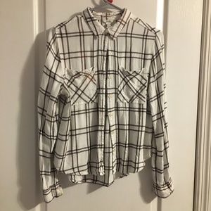Collared shirt in decent condition. Stripes of gray on white. Button down.