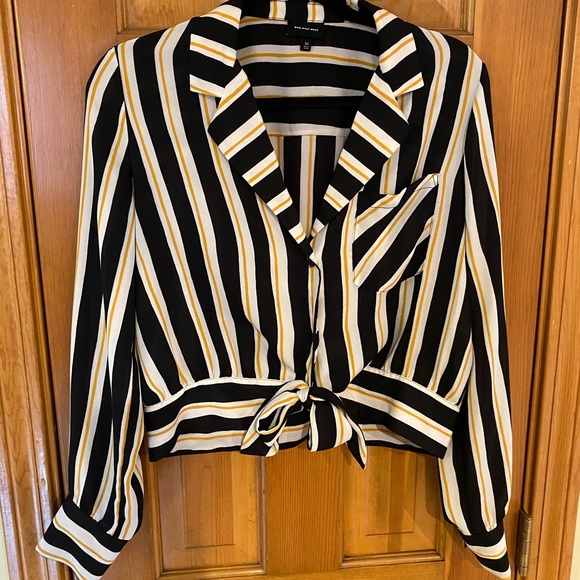 Collared, Tie Front, black white and mustard yellow accents