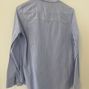 Light blue striped button down, size 2 in Boy. I’m a women size small this fit perfect.