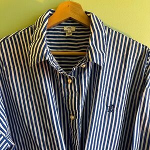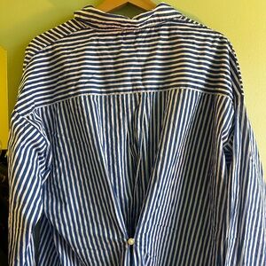 Striped Button Down Shirt Dress. Dress details like pearl buttons, and buttons meant to bring in the waist, perfect for work.