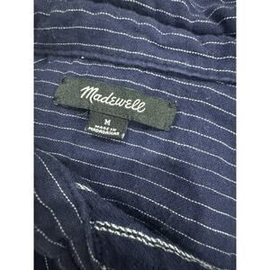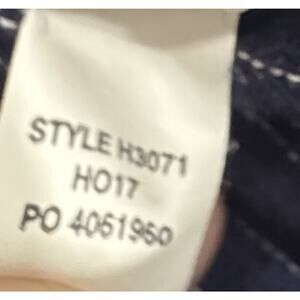Keywords: striped shirt, button down shirt, long sleeve shirt, collared shirt, navy blue shirt, pinstripe shirt, casual top, business casual, classic shirt, women's shirt, pocket shirt, everyday shirt, work shirt, office attire