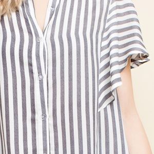 Grey and white button up blouse with ruffle sleeve. Loose fit.