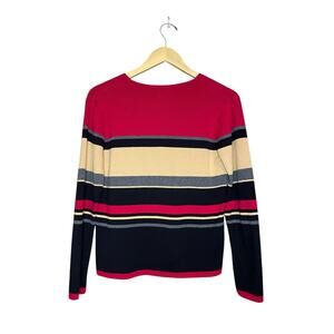 Striped Button Up Cardigan Petite Small Sag Harbor 100% Cotton 90s Gilmore Girls