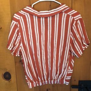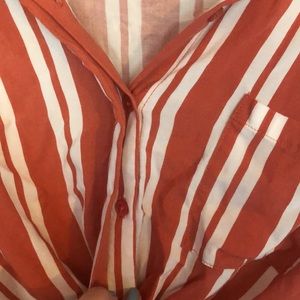 Orange and white striped top with buttons, twist detail on front, and tapered bottom. Never worn, in perfect condition