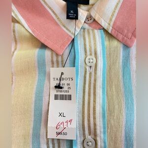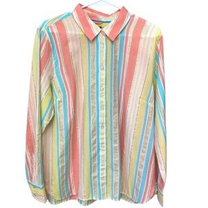 Striped Button Up Top Multicolor Metallic Women’s XL Preppy Coastal NWT