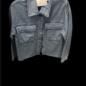 Stylish striped button-up jacket with front pockets. Perfect for casual wear.