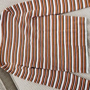 Stay stylish with this striped button-up cardigan sweater. Featuring a vibrant mix of colors, this sweater is perfect for any occasion. The comfortable fit and classic design make it a must-have in your wardrobe. LIKE NEW, medium, long sleeve. Neck, button down. Nice for a slightly cool night, not too thick. Hardly worn, if at all.