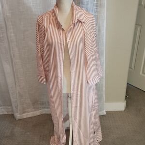 Elevate your style with this chic striped button-up coat. Perfect house dress, pool cover up