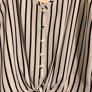 White and navy striped button up tank top with tie at bottom. Cute cropped length. New without tags Size Xsmall-small