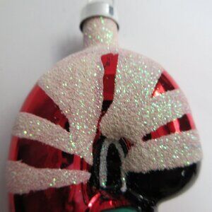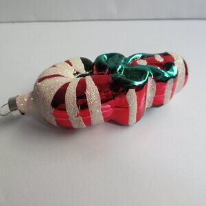 Striped Candy Cane with Gren Bow Glass Christmas Ornament Vintage 4"