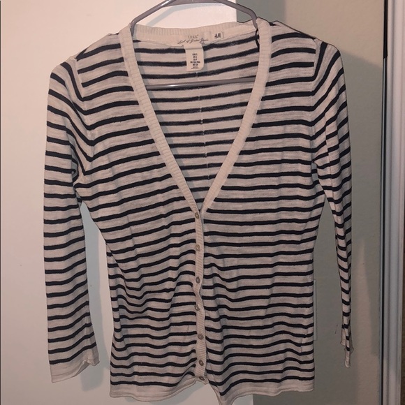 -Navy blue & white striped cardigan