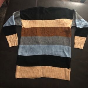 In like new condition and really soft! No stains or pills. No size tag but fits medium/large! I wear large most of the time so this would be a looser fit medium. Smoke free pet free home!
