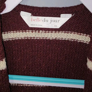 This is a Belle du Jour Cardigan in Burgandy with light stripes. This has been worn once or twice but I'm doing a major closet clean out so if I haven't worn in the last 3 months, I'm listing it lol.