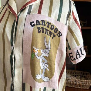 Striped Cartoon Bunny Shirt, Bugs Bunny Graphic, Retro Unisex Button Down