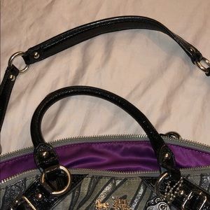 Cute, striped & fun. Goes perfect with just about any color! Has straps for carrying with your forearm, or a shoulder strap! Dimensions measure 16x11x5 :)