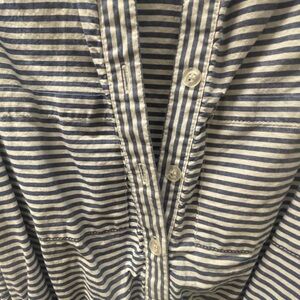 Adorable blue and white striped boat dress. Collared with buttons going half way down the front and a cinched waist