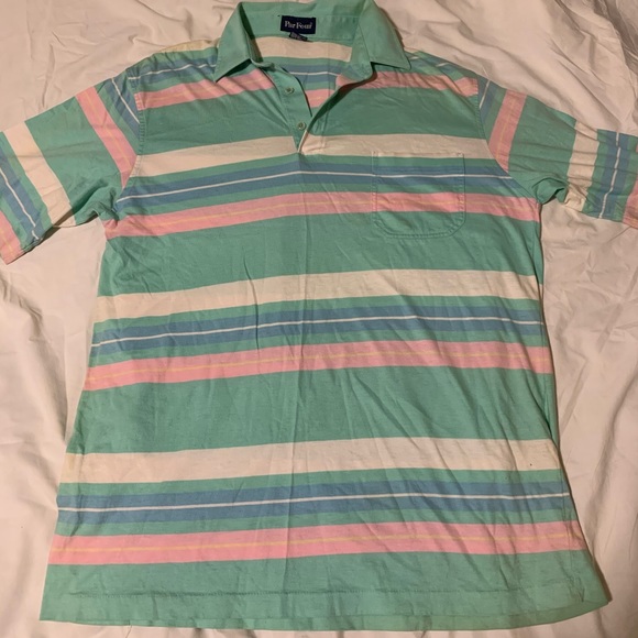 Vintage Striped Collared Tee. This tee is so light and soft - super comfortable. Slight piling on the shirt as seen in second photo from normal wear. Other than that, no flaws. Size Medium. Brand is Par Four.