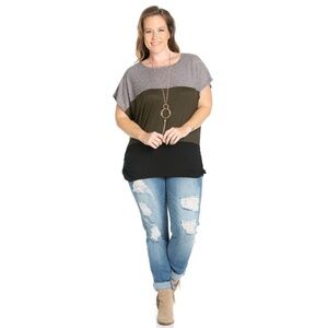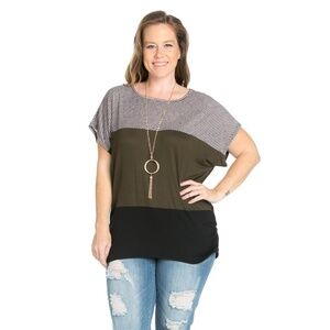 Add some stylish flair to your casual wardrobe with this Striped Color Block Top. With its olive and black color block design, it's sure to turn heads.