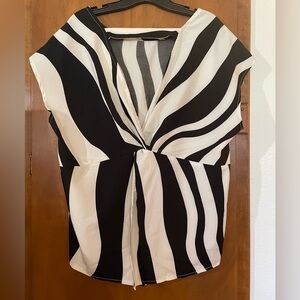 Easily wear this elegant black and white Colorblock striped top with a Batwing capped sleeve to the office during the day and take it to the streets in the evening by wearing with a pair of jeans and heels. The cutout-twist back gives that evening sexy appeal. Measurements are in the photos.