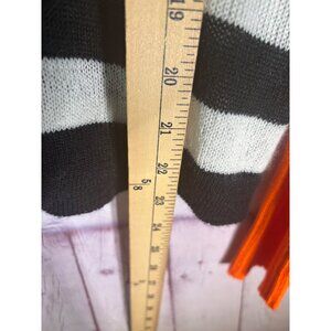A bold addition to your wardrobe, this striped sweater combines classic black and white with vibrant orange cuffs. Designed by Little Lies, it offers a comfortable fit and striking style perfect for making a statement in your everyday look.