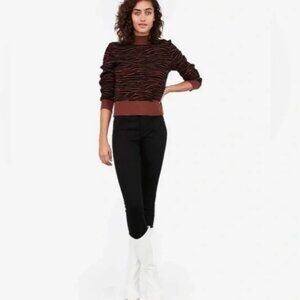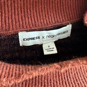 Stay cozy and stylish with this striped cowl neck sweater. Featuring a chic black and brown design, it's perfect for any occasion.
