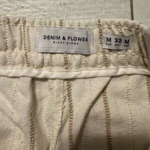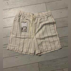 Stylish cream shorts with subtle stripes. Ideal for casual outings.