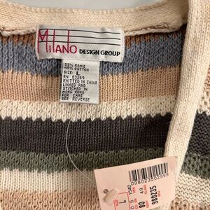 Stay cozy and stylish with this striped cream cardigan sweater. Perfect for layering, this sweater features a blend of soft colors for a versatile look.
