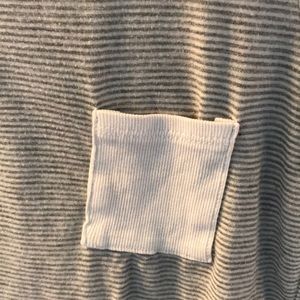 small gray and white stripes, white pocket on the front, crop top, size large but could fit like a medium ******NOW AVAILABLE AT @ROOM424