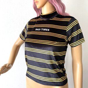 ♥ Fun black and yellow striped crop top with mock-neck and short sleeves. Awesome condition!