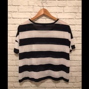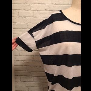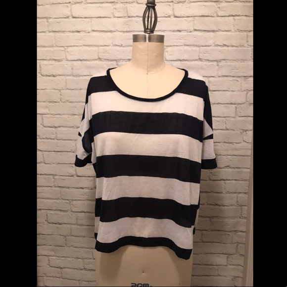 White and navy stripes. Slightly sheer. Boxy fit. Size says XS however my dress form is a SMALL so if you want it extra baggy and you’re XS than it would be perfect for you :) Used but still has life in it! 💃🏼
