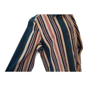 Made by the Lauren Jeans Company, this barn or chore style coat has a nautical theme to it. If it fit me, I would be keeping it for when I go boating! It is a sturdy heavy weight cotton twill in red, white and blue stripes.