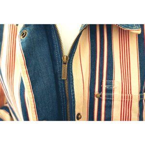 Striped Denim Jacket, Ralph Lauren Jeans Company, Red Off White and Blue Denim Barn Jacket, Heavy Weight Cotton Twill Coat