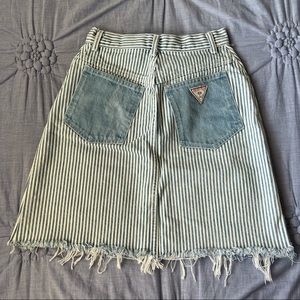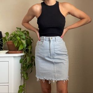 Chic and stylish striped denim skirt perfect for casual outings. Features a classic design with a modern twist. Ideal for pairing with your favorite tops.