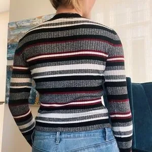 This cute sweater is perfect for fall and spring. It’s fitted and is awesome for layering. It gives me Wednesday Addams vibes. This was one of my faves for school but I’ve grown out of it. This is essentially in new condition! The model (me) is 5’3 with a 29 in waist & 32B cup size. It is a size small. Can go goth, 70s, whismygoth, dark academia, etc.!