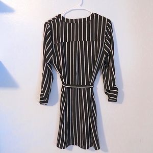 Never used black and white striped dress that comes just above the knee (I'm 5' 3") with elbow length sleeves.