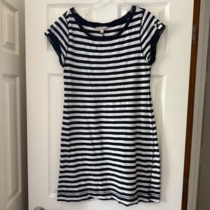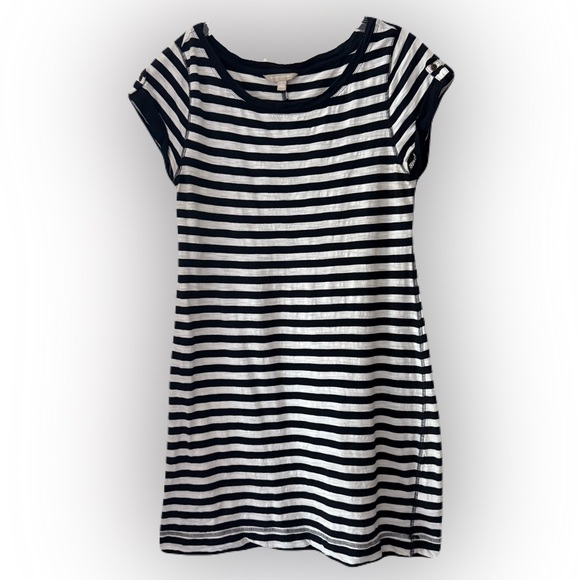 Banana Republic Navy & White Striped Mini Dress. Cap sleeves with gold button detail. Great condition.