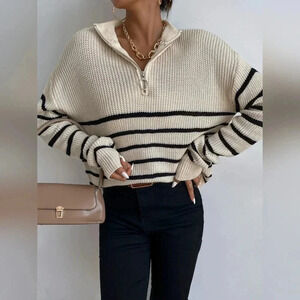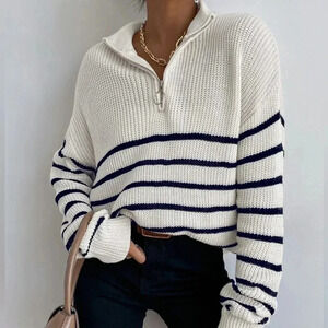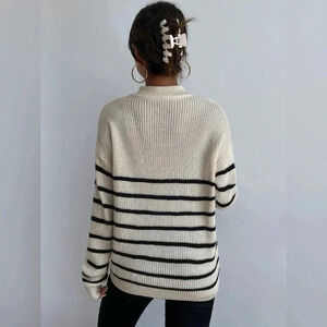 Striped Drop Shoulder Zipper Front Sweater