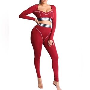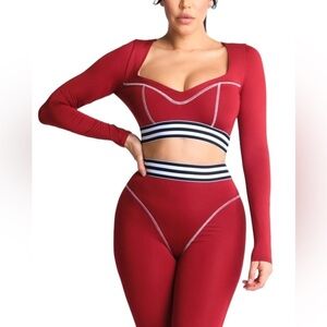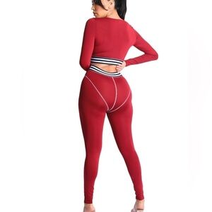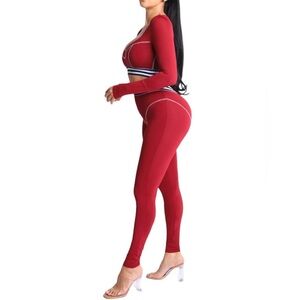 Striped Elastic Waist Band Reverse Cover Stitch Detailed 2 Piece Set New