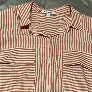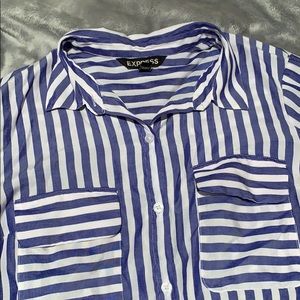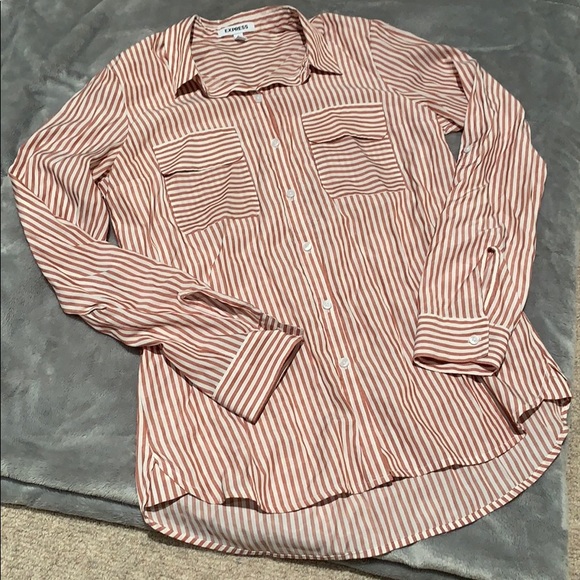 Worn and still in really good condition. The red one is a V-neck button down with thinner stripes. The blue one is a to the collar button down with a little bit thicker stripes. Soft, goes well with dress pants or skirts and jeans. Pleas indicate which one you would like when ordering. Thanks :)