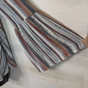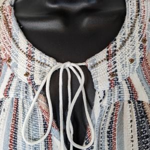 Striped Flowy Hippie Boho Indie Loose Fit Cropped Top w/ Beaded Neckline Size S