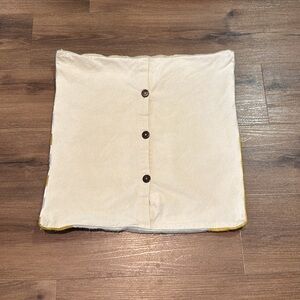 Stylish throw pillow cover with geometric stripes in yellow, gray, and cream. Perfect for modern decor.
