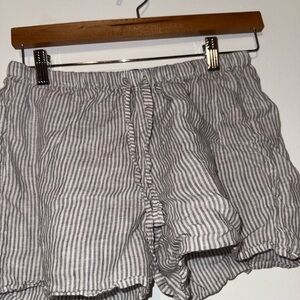 Striped Gray Long Sleeve Shirt & shorts sleep set