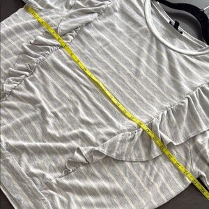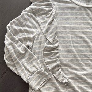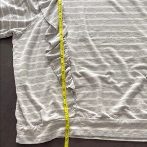 Elevate your style with this chic striped gray ruffle sweatshirt top. Perfect for any occasion, this casual top offers a blend of comfort and elegance.