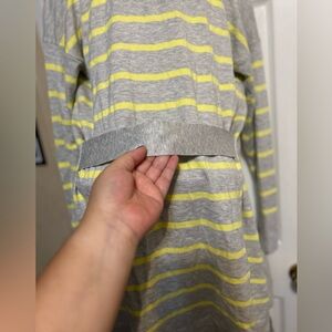 Stay stylish and comfortable with this chic striped gray and yellow sweater. Perfect for layering, this sweater adds a pop of color to any outfit.