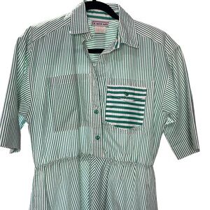 Elegant green striped dress perfect for any occasion. Features a stylish pocket detail and a comfortable fit.