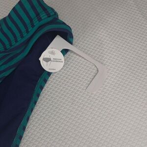 Striped Green Navy Blue Bikini Bottom Medium Coverage Swimwear Size M