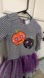 Details: stitched-on fabric pumpkin decorations. Tutu skirt is layered with underskirt for no-transparency.