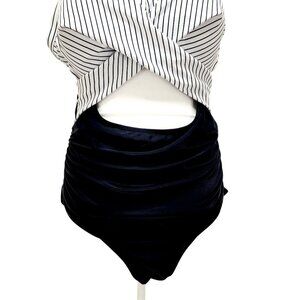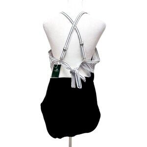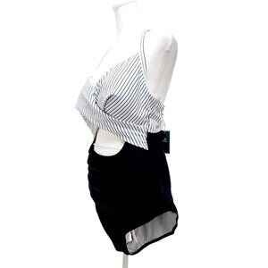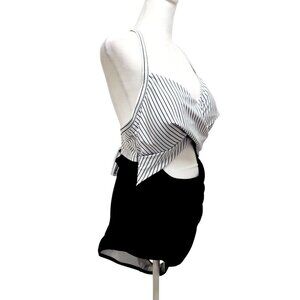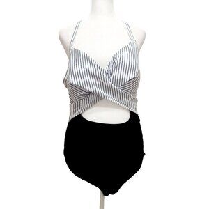 Striped Halter One-Piece Swimsuit Adjustable Straps Size XL Eomenie Black White