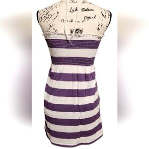 Like new - Super cute purple and white striped Halter Swimsuit Cover-up dress. Stretchy bustline with a flower skirt.