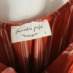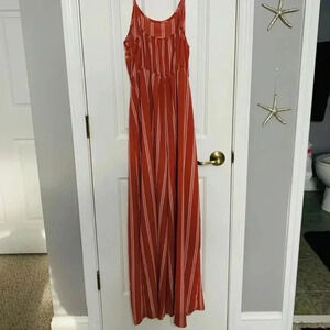 Salmon colored striped pant jumpsuit. Size large. Worn once.